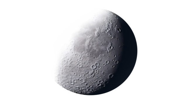 The red planet mars and its moon are isolated on transparent background, showcasing a desolate landscape with craters and rocky terrain