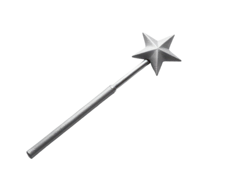 A magical accessory with a star-shaped head and a sturdy metal handle