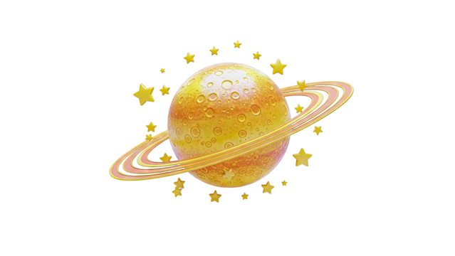 Pastel planet with rings isolated PNG on transparent background, colorful space object for graphic design and educational use
