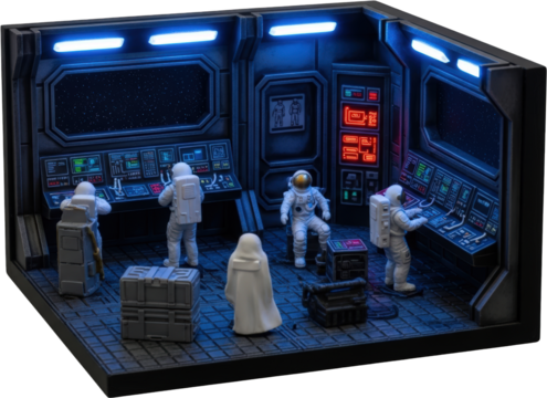 Futuristic Spacecraft Control Room Diorama Astronauts Working at Consoles with LED Lighting