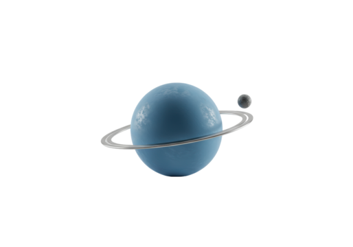 Wireframe planet and moons with blue rings on transparent background