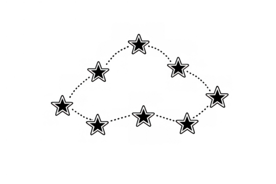 Southern cross constellation using black stars with white outline and dotted lines, an astronomical celestial star group
