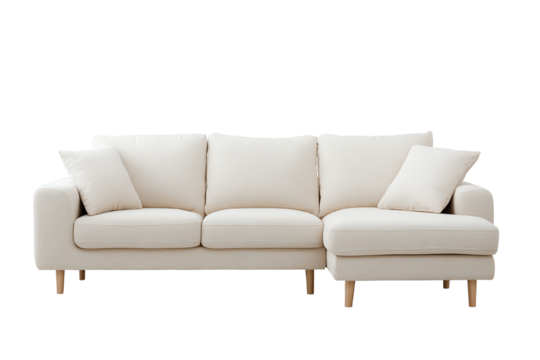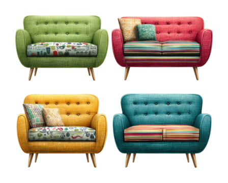 Colorful vintage sofas displayed in modern living room isolated on transparent background