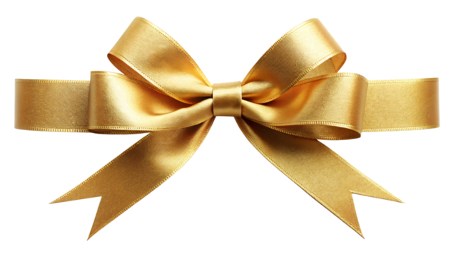 Golden satin ribbon bow, perfect for gift wrapping, isolated on white