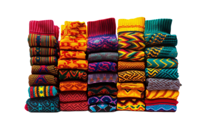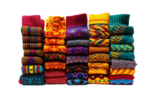 Colorful Patterned Socks Bundle on the Transparent Background