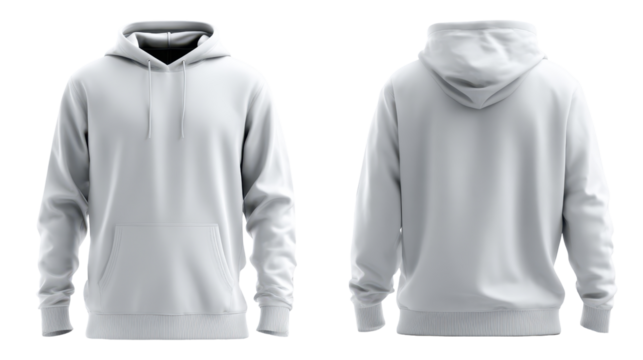 Hooded sweatshirt design displayed from front and back on plain background showcasing details and style elements