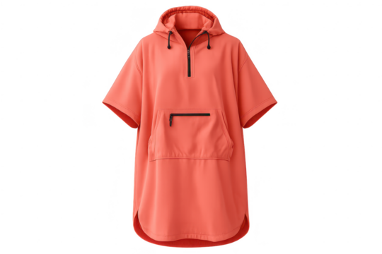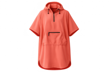 Salmon hooded poncho with transparent background for design insertion.
