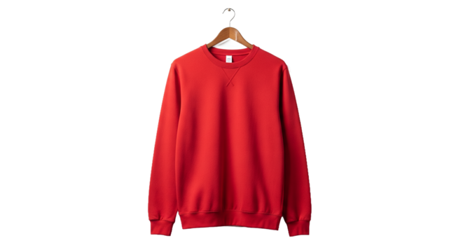 Red Crewneck Sweatshirt on Hanger, Casual Apparel, Warm Clothing