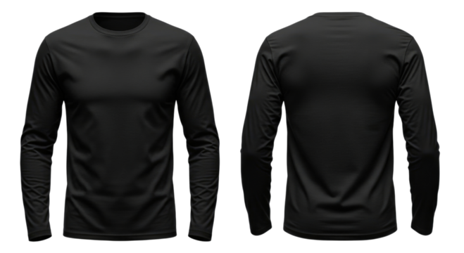 Black long sleeve t shirt mockup front and back transparent background cutout png