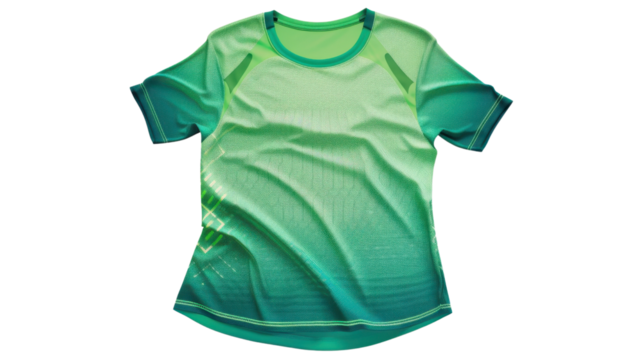 Green sports t-shirt mockup lying flat on transparent background