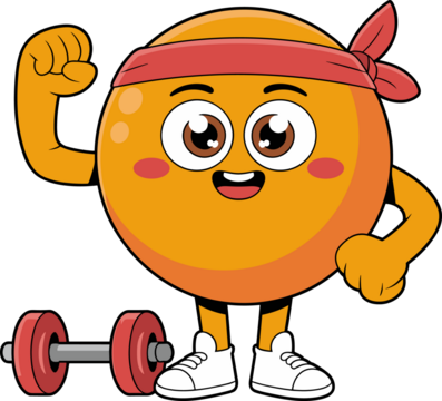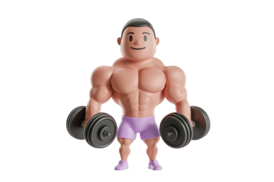 Cheerful cartoon character lifting weights, a fun fitness motivation for kids or humorous health campaigns, promoting exercise and active lifestyles