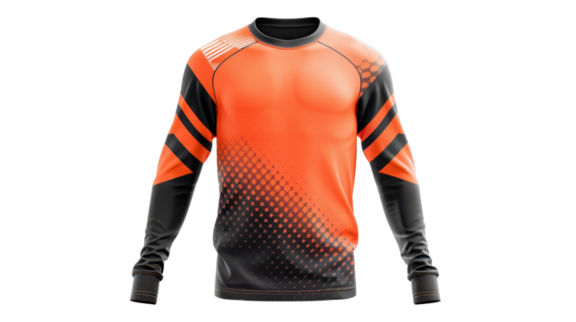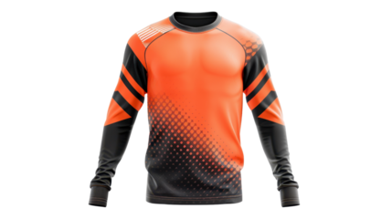 Orange and black long sleeve sports jersey with transparent background