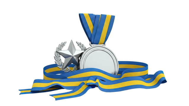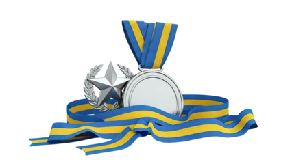 Gold medals and ribbons on transparent background for achievements