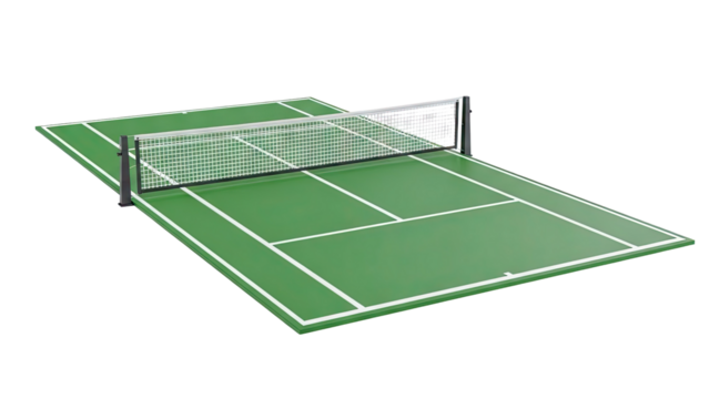Tennis Court Design: Green Turf, Net, Transparent Background