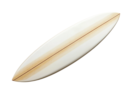 Surfing adventure at the beach aerial view of surfboard in ocean summer vibes. Isolated on transparent background, png.