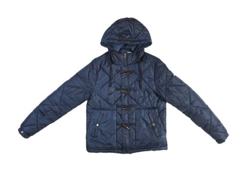 Jacket isolated on white background.Mens blue jacket in a hood isolated on a white background. Windbreaker jacket. Casual style.
