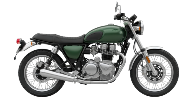 Isolated green motorcycle vehicle on a simple background for transportation and recreation