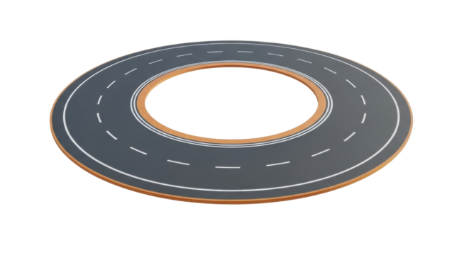 Isolated circular road with lane markings, concept of transportation infrastructure design