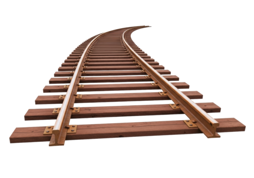 Isolated Railroad Tracks Curving, A Transportation Infrastructure Element, A Railway Design