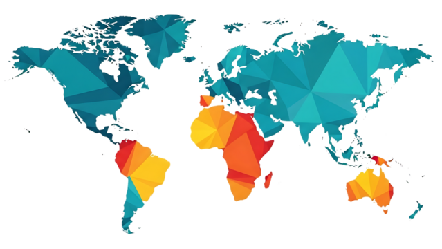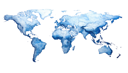 Geopolitical world map illustration with transparent background
