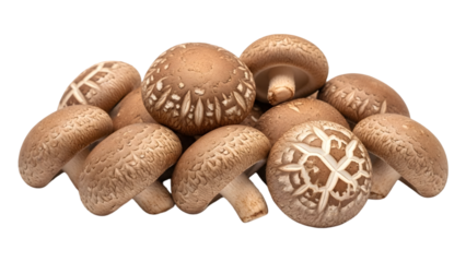 A cluster of mushrooms isolated on transparent background with unique patterns