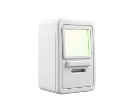 Isolated rendering of an ATM machine showing money being withdrawn for cash transactions