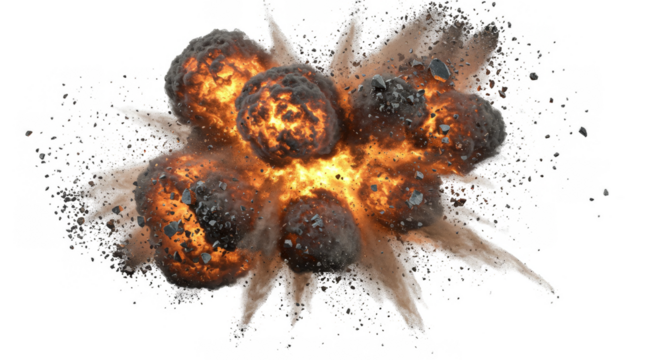 Dramatic Fiery Burst Explosion Isolated with Energy Heat and Smoke