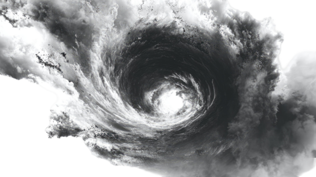 dramatic swirling storm vortex with powerful cloud spiral atmospheric motion abstract weather scene isolated on white background