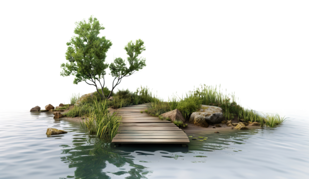 tropical island with trees summer vacation concept isolated on white background, png, ai generated.