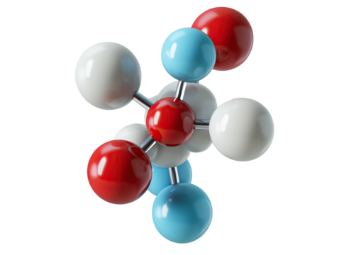 A vibrant molecular model, featuring interconnected blue and red spheres, beautifully illustrates complex chemical structures and scientific principles on a clean white background.