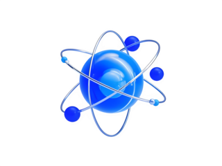 Electrons orbiting nucleus, depicting atomic structure against transparent backdrop
