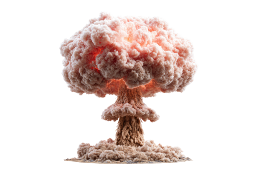 Mushroom cloud from an atomic bomb explosion showing destructive power and nuclear energy disaster on transparent background
