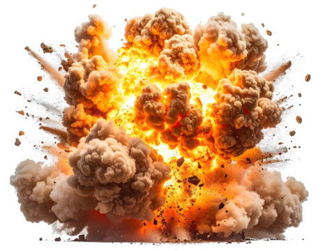 Fiery Explosion with Smoke and Intense Heat on Transparent Background