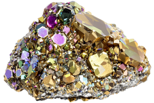 Bismuth crystal, gemstone, gem, mineral specimen PNG transparent background isolated graphic resource cutout. Lapidary, healing, geology, rockhounding, collecting, rainbow, colorful