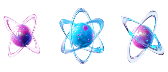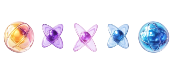 Pack of Atom Icons set on Transparent Background for Science Branding, Physics Education, or Technology Illustration