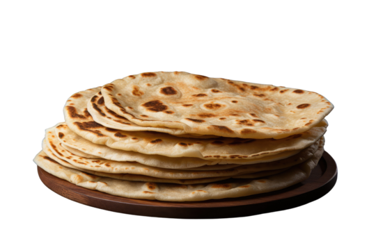 Indian Traditional Cuisine Chapati Also Known as Roti on isolated transparent Background