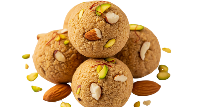 Delicious atta ladoo PNG on transparent background, ideal for festive menus, packaging, and sweet designs.