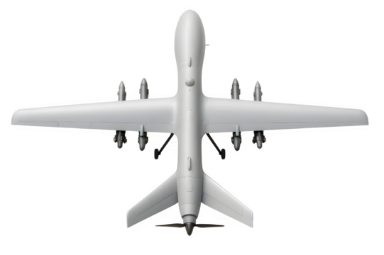 3D Render of Large-Scale Military Combat Drone with Missile Pods – Transparent Background PNG