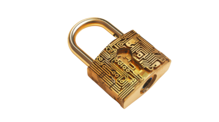 Golden padlock with integrated electronic circuits, password security technology for fraud prevention and confidential data network