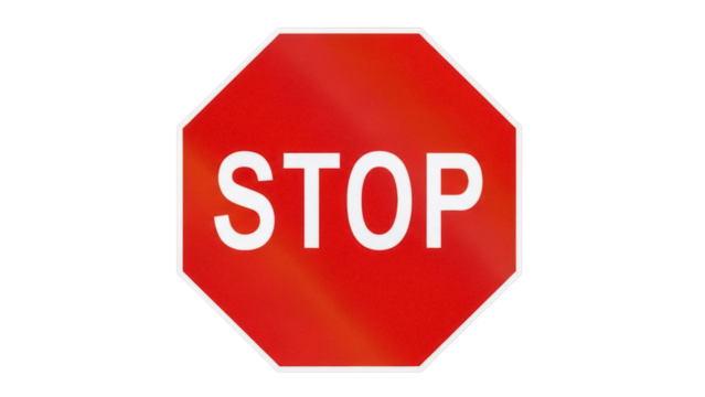 Red stop sign PNG isolated on transparent background, octagon shape traffic sign for road safety and transportation regulations