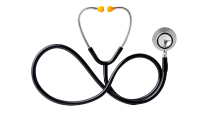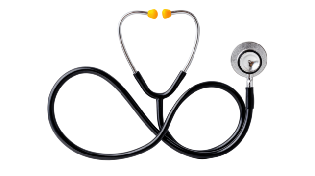 Red stethoscope coiled in heart shape, symbolizing love for healthcare and medicine