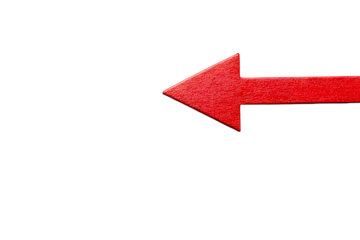 Red curved arrow pointing right, glowing with yellow sparkles against transparent backdrop, signaling directional movement and communication