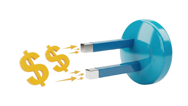 Isolated Magnet attracting dollar signs, symbol of attracting money or wealth concept