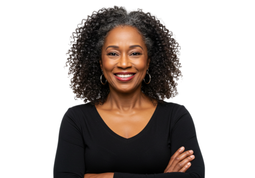 Happy Older Woman with Afro Portrait Smiling Cheerful Casual Look