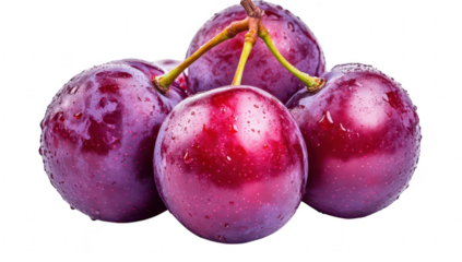 A close-up view of freshly washed. glistening purple plums arranged attractively on a textured surface. their color and natural droplets. ideal for food-related content