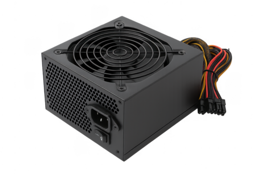 The Realistic Image of the Power Supply Unit (PSU), Where Digital Devices Find their Power Source on a Clear Surface or PNG Transparent Background.