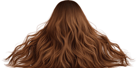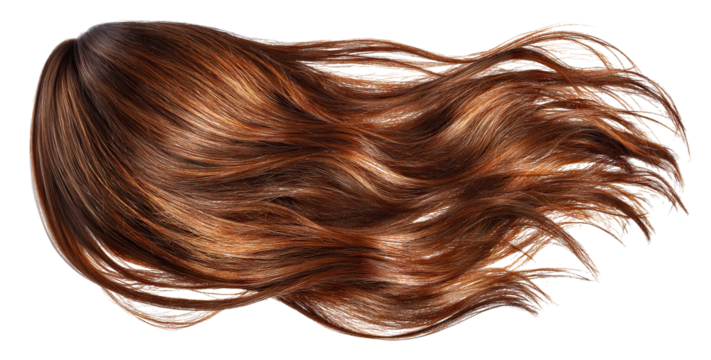 Flowing chestnut brown hair with soft waves and natural glossy shine, isolated on transparent cutout background
