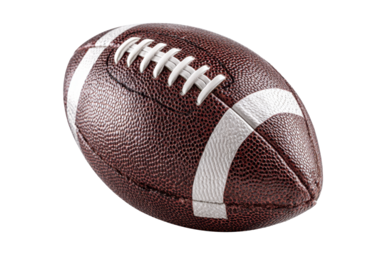 Football resting on a grassy field under bright sunlight during a weekend sports event on transparent background