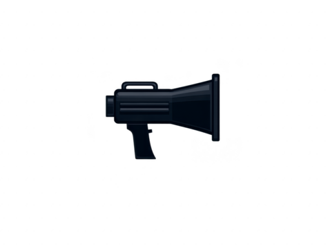 Black megaphone icon symbolizes communication and amplification of sound, often used in events, protests, or announcements, conveying strong message to large audience