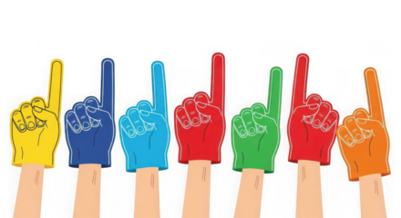 Group of Hands Holding Colorful Microphones for Press Conference or Media Interview Isolated on White Background